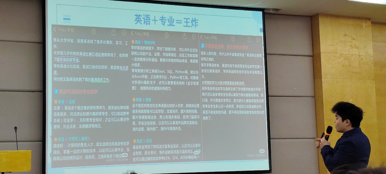 讲座伊始,余涛老师以风趣幽默的方式开场,迅速拉近了与同学们的距离。在讲解过程中,余老师不仅对四六级考试的题型、分值分布、考试流程等进行了详细介绍,还分享了实用的备考技巧。针对听力部分,老师强调了日常听力训练的重要性,并推荐了一些优质的听力材料和训练方法;在阅读方面,老师传授了快速定位关键信息、分析长难句的技巧,让同学们受益匪浅。
