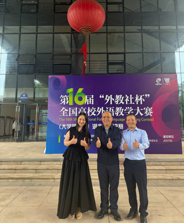 【本网讯】2025年9月20日,第十六届“外教社杯”全国高校外语教学大赛湖北赛区决赛在武汉落下帷幕。我院教师秦思、黎明星在比赛中表现优异,分别荣获视听说组一等奖和综合组二等奖,展现了我院教师扎实的教学功底与卓越的赛场风采,延续了我院在外语教学赛事中的优异表现。