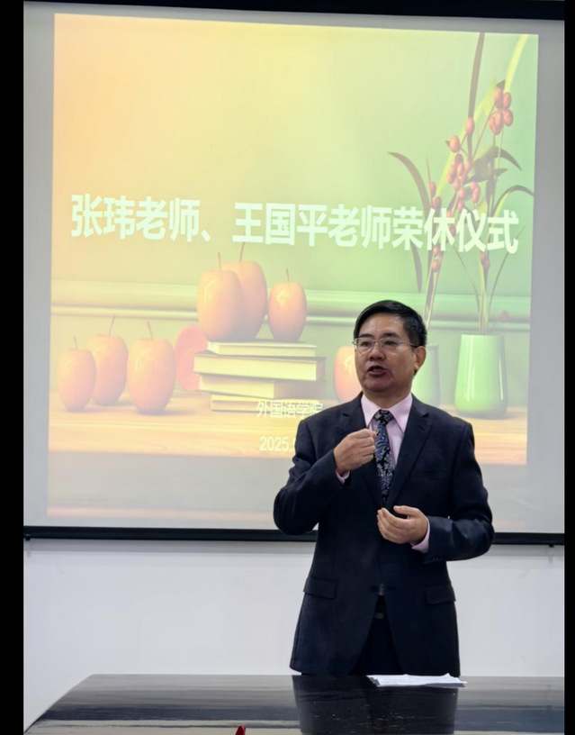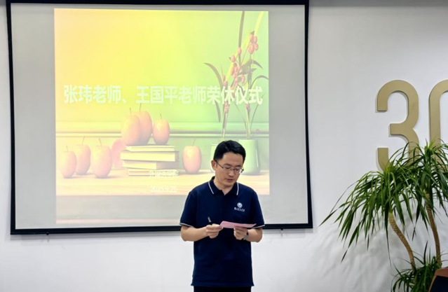 最后,主持人侯香浪老师再次代表全院教职工,向王国平老师和张玮老师表达了最真挚的感谢和最美好的祝福,祝愿他们长乐安康,乐享退休生活,并欢迎他们常回“家”看看。仪式在温馨、感动与祝福的氛围中圆满落下帷幕。